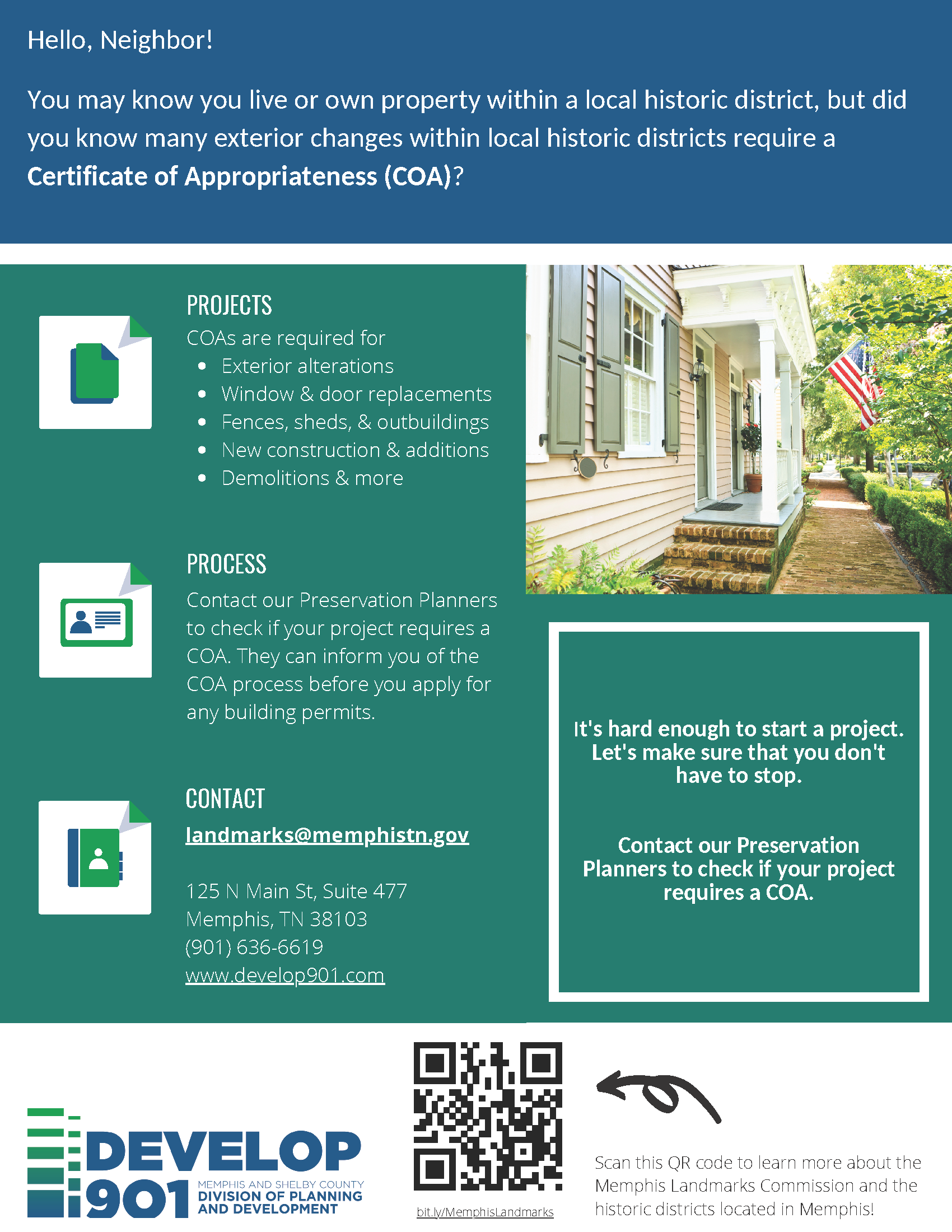 Just a quick heads upโif you're planning any exterior changes to your property, be sure to obtain a Certificate of Appropriateness (COA).